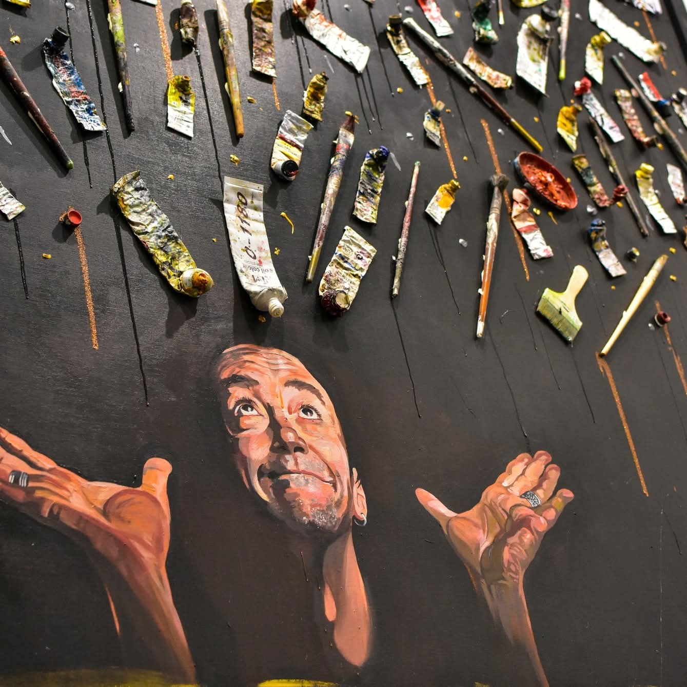 ПАЛЕТИТЕ КАКО СВЕТИ ПРЕДМЕТИ НА ПРОЦЕСОТ Кураторката Корнелија Конеска во концепцијата умешно го поставува дијалогот помеѓу завршената слика и исконската материја што ја создала. Во еден силен концептуален пресврт, покрај портретите Масин ги изложува и своите палети – тие живи, хаотични, но речиси свети предмети. Палетите тука не се случајно присутни. Тие се тивки материјални сведоци на чинот на сликање: мапи на бојата пред нејзината конечна одлука, пред да го пронајде трајното место на платното. Со гестот на нивно изложување, Масин ја руши бариерата помеѓу творецот и творбата, помеѓу интимноста на процесот и јавноста на делото.